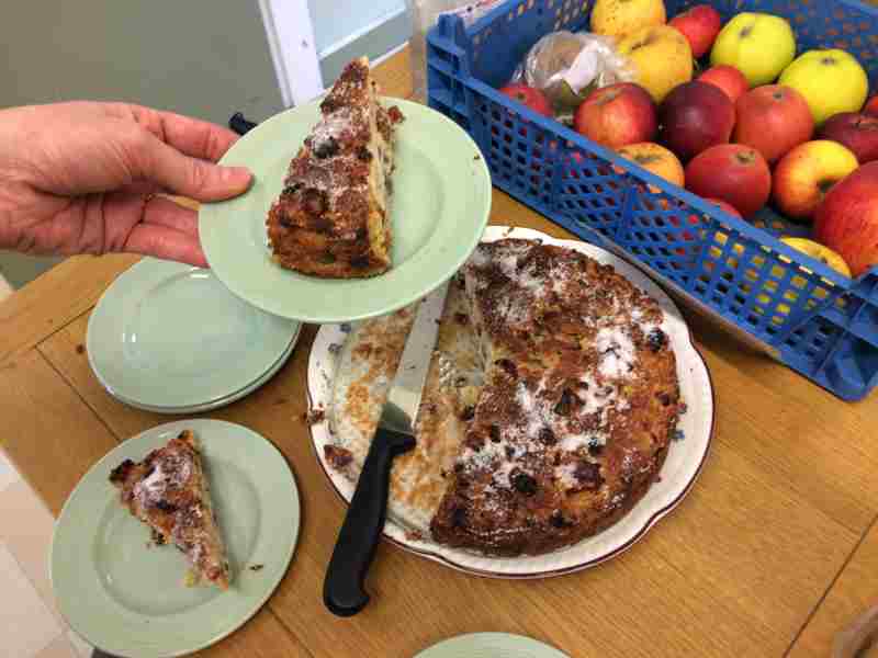 The lunch break included a tasting of twelve Phase 3 apples (late ripeners and good storers); you can find the varieties on the photo below. Favourite varieties were Devitt Pippin, Mere Pippin, Burford Yellow and Xmas Pink. There was some interest in Burford's Redflesh, which tastes rather bitter when raw but which cooks very well. Alison supplied a delicious apple cake made mainly from this apple.